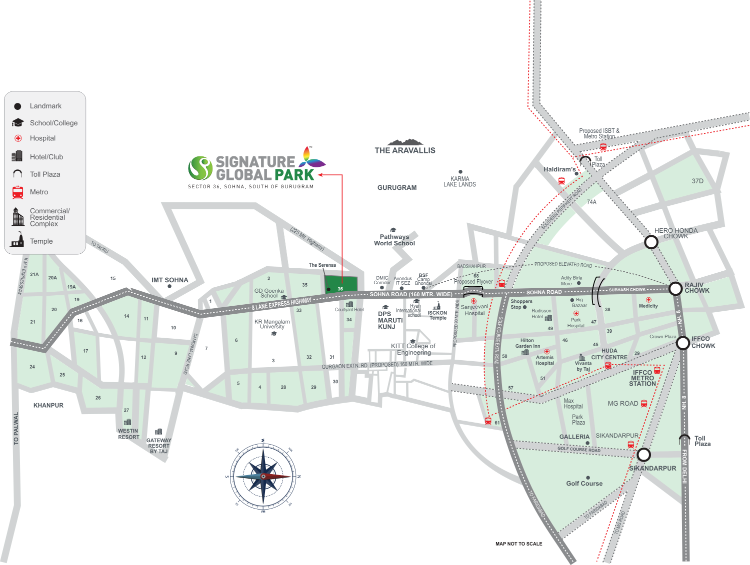 • Well connected to Golf Course Road, Sohna Road, NH-8, Gurugram and Faridabad Road.
