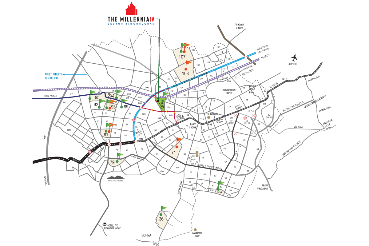 • Easy access to International airport via NH-8 and Dwarka Expressway.